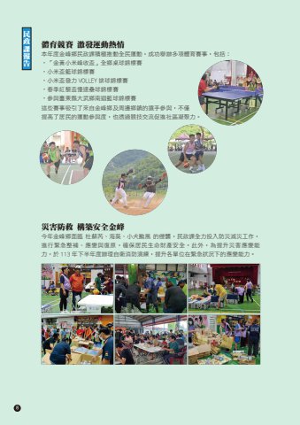 8%u6c11%u653f%u8ab2%u5831%u544a%u9ad4%u80b2%u7af6%u8cfd %u6fc0%u767c%u904b%u52d5%u71b1%u60c5%u672c%u5e74%u5ea6%u91d1%u5cf0%u9109%u6c11%u653f%u8ab2%u7a4d%u6975%u63a8%u52d5%u5168%u6c11%u904b%u52d5%uff0c%u6210%u529f%u8209%u8fa6%u591a%u9805%u9ad4%u80b2%u8cfd%u4e8b%uff0c%u5305%u62ec%uff1a%u2027%u300c%u91d1%u9ec3%u5c0f%u7c73%u5cf0%u6536%u76c3%u300d%u5168%u9109%u684c%u7403%u9326%u6a19%u8cfd%u2027%u5c0f%u7c73%u76c3%u7c43%u7403%u9326%u6a19%u8cfd%u2027%u5c0f%u7c73%u76c3%u767c%u529b VOLLEY %u6392%u7403%u9326%u6a19%u8cfd%u2027%u6625%u5b63%u7d05%u85dc%u76c3%u6162%u901f%u58d8%u7403%u9326%u6a19%u8cfd%u2027%u53c3%u8207%u81fa%u6771%u7e23%u5927%u6b66%u9109%u5357%u8ff4%u7c43%u7403%u9326%u6a19%u8cfd%u9019%u4e9b%u8cfd%u4e8b%u5438%u5f15%u4e86%u4f86%u81ea%u91d1%u5cf0%u9109%u53ca%u5468%u908a%u9109%u93ae%u7684%u9078%u624b%u53c3%u8207%uff0c%u4e0d%u50c5%u63d0%u9ad8%u4e86%u5c45%u6c11%u7684%u904b%u52d5%u53c3%u8207%u5ea6%uff0c%u4e5f%u900f%u904e%u7af6%u6280%u4ea4%u6d41%u4fc3%u9032%u793e%u5340%u51dd%u805a%u529b%u3002%u707d%u5bb3%u9632%u6551 %u69cb%u7bc9%u5b89%u5168%u91d1%u5cf0%u4eca%u5e74%u91d1%u5cf0%u9109%u9762%u81e8 %u675c%u8607%u82ae%u3001%u6d77%u8475%u3001%u5c0f%u72ac%u98b1%u98a8 %u7684%u4fb5%u8972%uff0c%u6c11%u653f%u8ab2%u5168%u529b%u6295%u5165%u9632%u707d%u6e1b%u707d%u5de5%u4f5c%uff0c%u9032%u884c%u7dca%u6025%u6574%u88dc%u3001%u61c9%u8b8a%u8207%u5fa9%u539f%uff0c%u78ba%u4fdd%u5c45%u6c11%u751f%u547d%u8ca1%u7522%u5b89%u5168%u3002%u6b64%u5916%uff0c%u70ba%u63d0%u5347%u707d%u5bb3%u61c9%u8b8a%u80fd%u529b%uff0c%u65bc 113 %u5e74%u4e0b%u534a%u5e74%u5ea6%u8fa6%u7406%u81ea%u885b%u6d88%u9632%u6f14%u7df4%uff0c%u63d0%u5347%u5404%u55ae%u4f4d%u5728%u7dca%u6025%u72c0%u6cc1%u4e0b%u7684%u61c9%u8b8a%u80fd%u529b%u3002