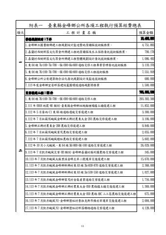 %u9644%u8868%u4e00 %u81fa%u6771%u7e23%u91d1%u5cf0%u9109%u516c%u6240%u5404%u9805%u5de5%u7a0b%u57f7%u884c%u9810%u7b97%u7d93%u8cbb%u7e3d%u8868%u9805%u6b21 %u5de5 %u7a0b %u8a08 %u756b %u540d %u7a31 %u9810%u7b97%u91d1%u984d%u4e00 %u52de%u52d9%u898f%u5283%u8a2d%u8a08%uff1a7%u4ef6 19,493,857 1.%u91d1%u5cf0%u9109%u7acb%u5716%u66f8%u9928%u8208%u5efa%u5de5%u7a0b%u898f%u5283%u8a2d%u8a08%u76e3%u9020%u66a8%u5730%u8cea%u947d%u63a2%u6280%u8853%u670d%u52d9%u6848%u3002 4,751,895 2.%u5609%u862d%u6751%u897f%u5074%u90e8%u843d%u6587%u5316%u805a%u6703%u6240%u8208%u5efa%u5de5%u7a0b%u5730%u8cea%u947d%u63a2%u53ca%u6c34%u571f%u4fdd%u6301%u59d4%u8a17%u6280%u8853%u670d%u52d9%u6848%u3002 790,176 3.%u5609%u862d%u6751%u897f%u5074%u90e8%u843d%u6587%u5316%u805a%u6703%u6240%u8208%u5efa%u5de5%u7a0b%u6574%u9ad4%u898f%u5283%u8a2d%u8a08%u59d4%u8a17%u6280%u8853%u670d%u52d9%u6848%u3002 1,086,492 4.%u677164%u7dda7k+100~7k+700%u30016k+300~6k+600%u9053%u8def%u707d%u4fee%u5de5%u7a0b%u5c08%u6848%u7ba1%u7406%u59d4%u8a17%u6280%u8853%u670d%u52d9 3,133,376 5.%u677164%u7dda7K+100~7K+700%u30016K+300~6K+600%u9053%u8def%u707d%u4fee%u5de5%u7a0b%u6280%u8853%u670d%u52d9 7,551,918 6.%u91d1%u5cf0%u9109%u516c%u6240%u516c%u6709%u5efa%u7bc9%u7269%u5408%u6cd5%u5316%u59d4%u8a17%u898f%u5283%u8a2d%u8a08%u53ca%u76e3%u9020%u6280%u8853%u670d%u52d9 680,000 7.113%u5e74%u5ea6%u91d1%u5cf0%u9109%u5b9c%u5c45%u90e8%u843d%u5efa%u8a2d%u85cd%u5716%u74b0%u5883%u9053%u8def%u898f%u5283%u52de%u52d9%u6848 1,500,000 %u4e8c %u707d%u5bb3%u5fa9%u5efa%u5de5%u7a0b%uff1a63%u4ef6 705,385,566 1.%u677164%u7dda7K+100~7K+700%u30016K+300~6K+600%u9053%u8def%u707d%u4fee%u5de5%u7a0b 293,302,5662.111%u5e740918%u5730%u9707-M1%u985e%u5225-%u81fa%u6771%u7e23%u91d1%u5cf0%u9109%u5783%u573e%u63a9%u57cb%u5834%u64cb%u571f%u7246%u5fa9%u5efa%u5de5%u7a0b 11,852,000 3.112%u5e745%u6708%u8c6a%u96e8-C1%u677166%u7dda%u9053%u8def%u908a%u5761%u707d%u5bb3%u5fa9%u5efa%u5de5%u7a0b 3,300,000 4.112%u5e747%u6708%u675c%u8607%u82ae%u98b1%u98a8%u91d1%u5cf0%u9109%u6b63%u8208%u6751%u8fb2%u6771%u592a%u91d1203%u8fb2%u8def%u707d%u4fee%u5fa9%u5efa%u5de5%u7a0b 3,106,000 5.%u91d1%u5cf0%u9109%u6b63%u8208%u6751%u8fb2%u6771%u91d1208%u8fb2%u8def%u707d%u4fee%u5fa9%u5efa%u5de5%u7a0b 9,849,000 6.112%u5e747%u6708%u675c%u8607%u82ae%u98b1%u98a8%u8cd3%u8302%u8fb2%u8def%u707d%u5bb3%u5fa9%u5efa%u5de5%u7a0b 2,055,000 7.112%u5e747%u6708%u675c%u8607%u82ae%u98b1%u98a8%u58e2%u5775%u8fb2%u8def%u707d%u5bb3%u5fa9%u5efa%u5de5%u7a0b 5,602,000 8.112%u5e7410%u6708%u5c0f%u72ac%u98b1%u98a8%uff0d%u677164%u7dda5K+800~6K+100%u9053%u8def%u707d%u5bb3%u5fa9%u5efa%u5de5%u7a0b 26,029,000 9.113%u5e747%u6708%u51f1%u7c73%u98b1%u98a8%u707d%u5bb3-H3%u985e%u5225-%u91d1%u5cf0%u9109%u5609%u862d%u6751%u9ebb%u5229%u9727%u8fb2%u8def%u707d%u5bb3%u5fa9%u5efa%u5de5%u7a0b 345,00010.113%u5e747%u6708%u51f1%u7c73%u98b1%u98a8%u592a%u9ebb%u91cc%u6eaa%u91d1%u5cf0%u5de6%u5cb8%u4e8c%u865f%u8b77%u5cb8%u707d%u5f8c%u5fa9%u5efa%u5de5%u7a0b 15,670,00011.113%u5e747%u6708%u51f1%u7c73%u98b1%u98a8%u91d1%u5cf0%u9109%u65b0%u8208%u6751%u677163%u7dda3k+830-870%u9053%u8def%u707d%u5bb3%u5fa9%u5efa%u5de5%u7a0b 2,368,00012.113%u5e747%u6708%u51f1%u7c73%u98b1%u98a8%u91d1%u5cf0%u9109%u65b0%u8208%u6751%u677163%u7dda5k+530-550%u9053%u8def%u707d%u5bb3%u5fa9%u5efa%u5de5%u7a0b 1,027,00013.113%u5e747%u6708%u51f1%u7c73%u98b1%u98a8%u91d1%u5cf0%u9109%u8cd3%u8302%u6751%u91d1%u5d19%u7522%u696d%u9053%u8def%u707d%u5bb3%u5fa9%u5efa%u5de5%u7a0b 1,716,00014.113%u5e747%u6708%u51f1%u7c73%u98b1%u98a8%u91d1%u5cf0%u9109%u6b63%u8208%u6751%u8fb2%u6771%u592a%u91d1050%u8fb2%u8def%u64cb%u571f%u7246%u707d%u5f8c%u5fa9%u5efa%u5de5%u7a0b 1,369,00015.113%u5e747%u6708%u51f1%u7c73%u98b1%u98a8%u91d1%u5cf0%u9109%u6b63%u8208%u6751%u8fb2%u6771%u592a%u91d1050%u8fb2%u8defABC%u4e09%u5de5%u5340%u8fb2%u8def%u707d%u5f8c%u5fa9%u5efa%u5de5%u7a0b 675,00016.113%u5e747%u6708%u51f1%u7c73%u98b1%u98a8N1-%u91d1%u5cf0%u9109%u6b77%u5775%u6751%u9b6f%u62c9%u514b%u65af%u540a%u6a4b%u53f3%u5cb8%u8b77%u5cb8%u707d%u5f8c%u5fa9%u5efa%u5de5%u7a0b 2,684,00017.113%u5e747%u6708%u51f1%u7c73%u98b1%u98a8N1-%u91d1%u5cf0%u9109%u6b77%u5775%u6751%u90e8%u843d%u806f%u7d61%u9053%u8def%u707d%u5bb3%u5fa9%u5efa%u5de5%u7a0b 4,128,00011